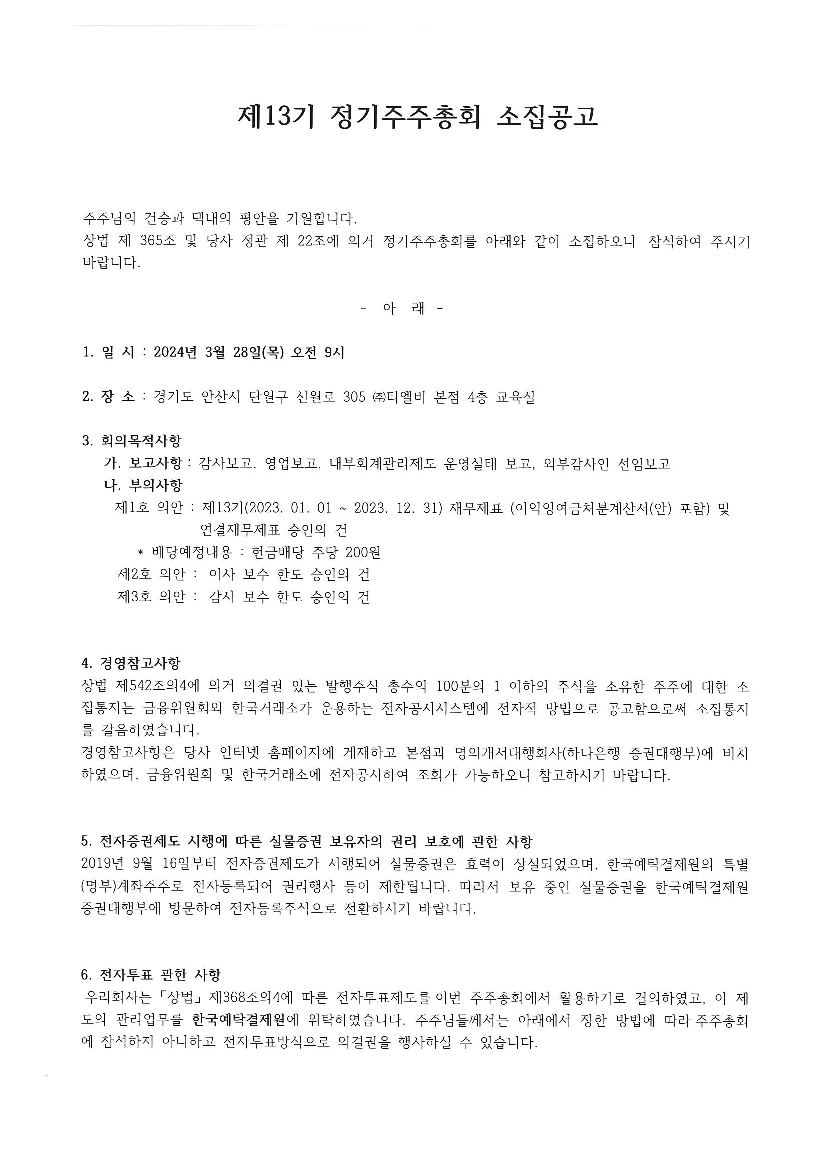 제13기 정기주주총회 소집공고